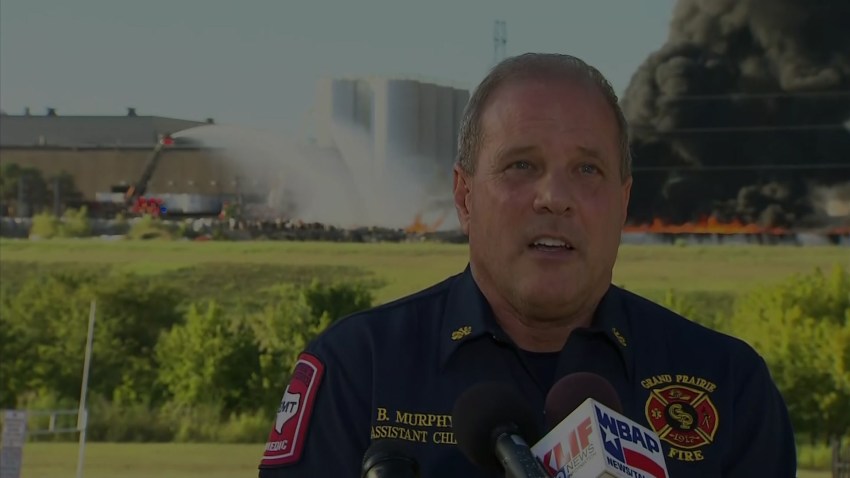A massive fire at a plastics facility in Grand Prairie continues to smolder close to 24 hours after it started. Meanwhile, officials are urging people to stay indoors because of the "toxic plume" rising from the scene that could be an irritant for people with respiratory issues.